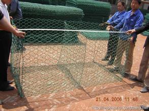 格賓網(wǎng)由各種網(wǎng)孔規(guī)格的格賓網(wǎng)片按照ASTM A975-97規(guī)范組裝而成。工程現(xiàn)場填充石料組裝形成柔性的、透水的、整體的支擋結(jié)構(gòu),用于生態(tài)防護(hù)工程。網(wǎng)絲采用高鍍鋅鋼絲或者10%鋁鋅合金鋼絲,如果環(huán)境條件比較惡劣,污染比較嚴(yán)重,可以在鋼絲的表面涂塑(PVC),以增強(qiáng)網(wǎng)絲的抗腐蝕性能。格賓網(wǎng)網(wǎng)孔規(guī)格:6×8cm 8×10cm 10×12cm 12×15cm。格賓網(wǎng)絲徑:2.0-4.0mm(注:為加強(qiáng)網(wǎng)子本身的穩(wěn)固性邊絲要比網(wǎng)絲大1mm)。格賓網(wǎng)材質(zhì):熱鍍鋅 電鍍 PVC、PE包塑 高爾凡(鋅鋁合金) 【鍍鋅(含鋅量):電鍍:10-25g/㎡;熱鍍:30-300g/㎡】。格賓網(wǎng)的用途:本產(chǎn)品廣泛用于高速公路、鐵路護(hù)欄、邊坡防護(hù)、邊坡綠化、山體沿面、掛網(wǎng)噴漿、井巷防護(hù)、建筑、養(yǎng)殖用網(wǎng)、動(dòng)物園圍欄、草原圍欄、山坡網(wǎng)箱、抗洪網(wǎng)箱、護(hù)堤欄網(wǎng)、控制和引導(dǎo)河流走向、泄洪壩和導(dǎo)流渠、巖崩防護(hù)、大橋保護(hù),固土結(jié)構(gòu),擋土墻,防止水土流失、海濱防御工程、港口工程等。